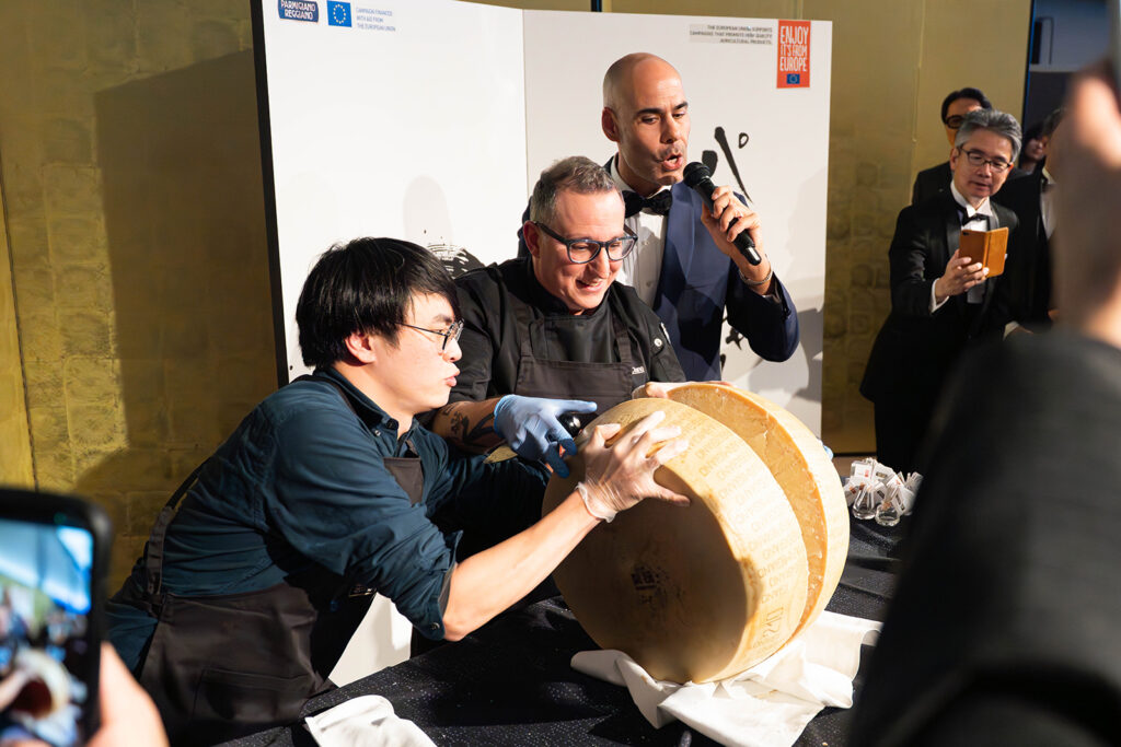 「たとえば、今夜のイベントでは若いパルミジャーノ レッジャーノを使って、チップスのようなクリスプを作ります。若いチーズは水分を保っているため、オーブンで焼くと理想的な仕上がりになります。一方、24カ月熟成はイタリアで最も一般的で、そのまま食べても、パスタやリゾットに削っても素晴らしい。30カ月以上になると、より崩れやすく、香りや味わいも複雑で個性的になります。こうしたものは、シンプルにそのまま味わうのが一番ですね」