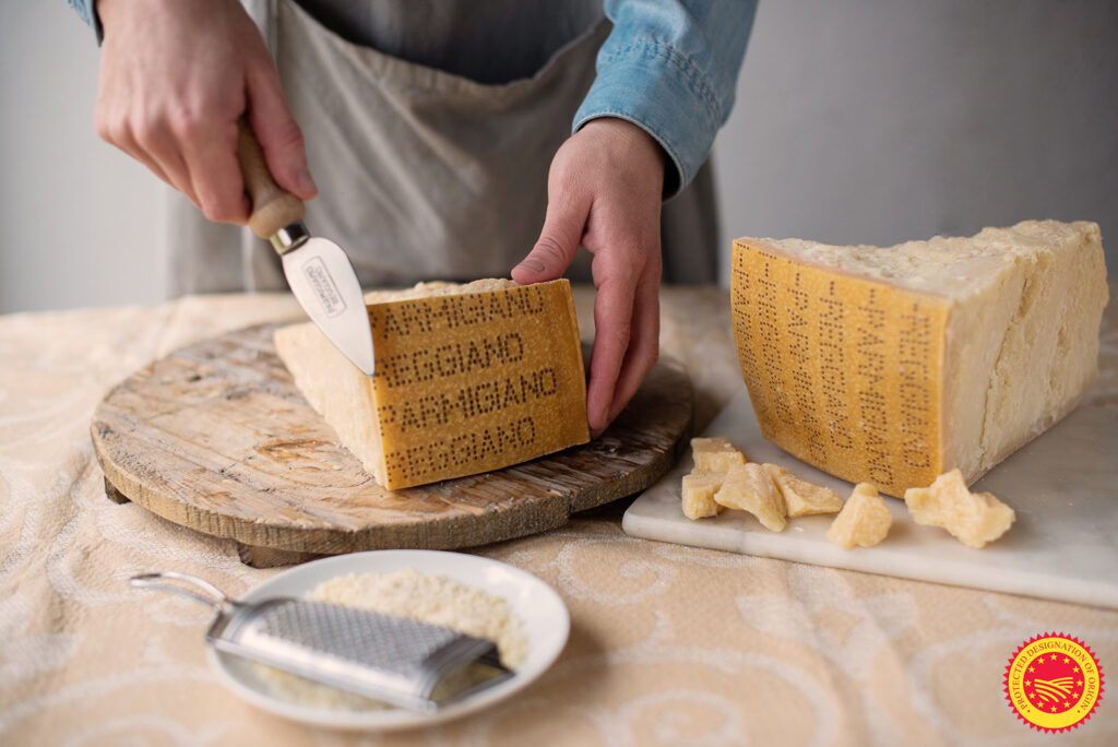 「さらに日常的な食材を超え、パルミジャーノ レッジャーノは贈り物としても愛用されています。結婚式や記念日、大切な節目などでは、一片やホールごと贈られることが一般的で、相手へのリスペクトや寛容さの印として、また特別なものを分かち合う慣習としても愛用されているんですよ」