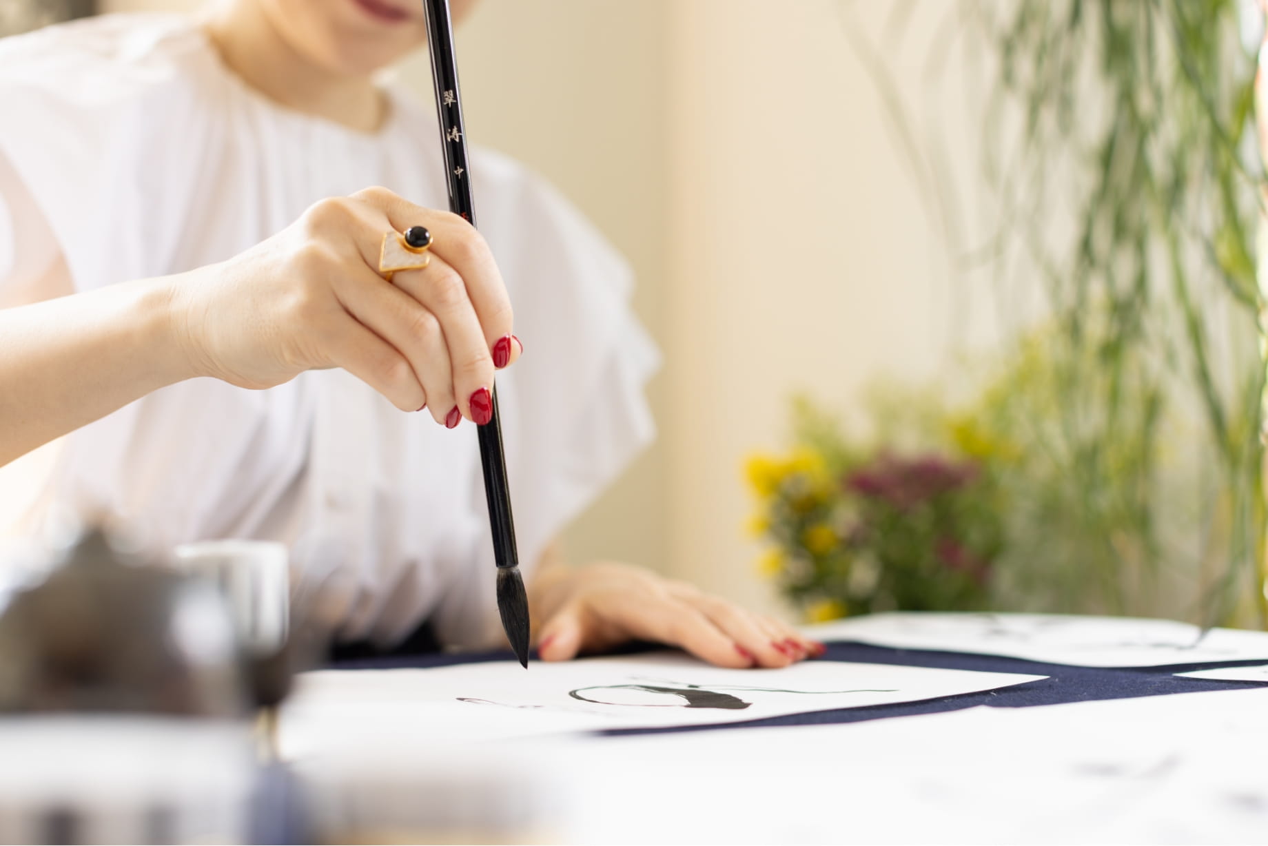 「幼少期に兄が書道を習っており、その待ち時間に先生から筆遊びを褒めてもらえたのをきっかけに、親に頼んで習い始めました。私が通ったのは基礎をとても大切にするお教室で、日々トレーニングに励みました。夏休みなどは朝からずっと書いていた記憶があります。いま思えば、初期に基礎をしっかり学んだことがその後のキャリア形成に繋がったと思いますね」