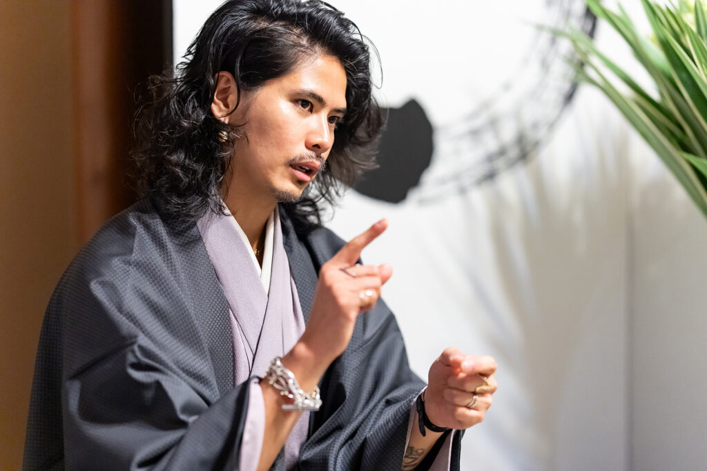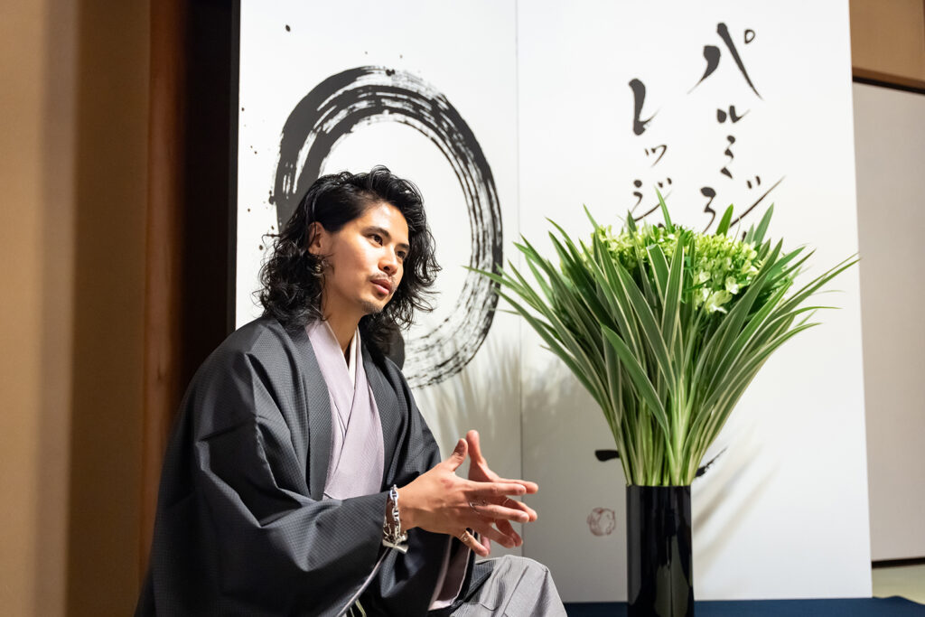 「ジュエリーデザイナーの稲木ジョージと申します。私は2014年に夢を叶えるために単身、憧れのニューヨークへ渡米しました。そして現地でできた友人と話す際に、友人たちは自国の歴史や文化について詳しく知っていたにもかかわらず、自分は故郷であるフィリピンや日本の文化について知識が浅いことに気づき、苦い思いを味わいました。そうした経験を経て、日本の歴史や文化、芸術に対して振り返るきっかけを得たのです。そうして茶道や日本の伝統工芸と出会い、それがいまのジュエリーデザインのビジネスにもつながっています」と、日本文化と向き合うことになったきっかけについて振り返った。