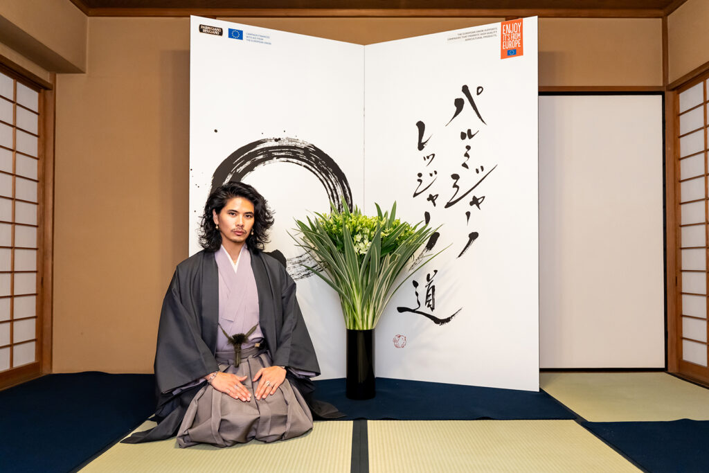 パルミジャーノ レッジャーノ道の「道」とは、書道や剣道と同じように、ひとつの技を極めるために鍛錬を重ねる姿勢を意味する。長い年月をかけ、天然由来の旨みを追求してきたパルミジャーノ レッジャーノのチーズづくりと、その精神が重なることから、この名が生まれた。そして日本で「道」を語るうえで欠かせない存在が、茶道である。今回はパルミジャーノ レッジャーノと茶道のコラボレーションとして、茶道裏千家 教授・養和会代表の味岡宗靖(そうせい)氏の協力のもと茶会を開催。両者に通底する「道」の精神に向き合った。